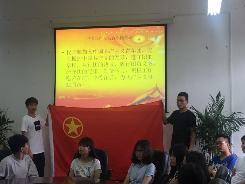 此次活动以为学生团员树立坚定的政治意识、大局意识、核心意识、看齐意识为宗旨,引导青年学生团员自觉在思想上、行动上同以习近平同志为核心的党中央保持高度一致,同时铭记历史先辈的丰功伟绩,时刻鞭策自己努力学习,追求上进。活动开始,林端民老师简单介绍活动内容后,由团员学生代表带头宣誓,老师、同学们纷纷庄严宣誓,重温誓词,慷慨激昂的声音回荡在理工教室。活动最后,林老师就如何做一名合格的共青团员做出了活动总结,并合理分配、明确强调了各级团员接下来的工作。