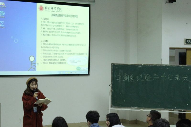 会议开始,路同学首先点明会议主题,强调会议的流程。紧接着,学生会主席团成员对自己分管部门的工作进行了总结,并表达对下一年工作的期望。团委会组织部部员王子睿同学上台表达了自己本学期加入团委会的心得体会,表示半年来在组织的关心和指导下,自己成长很快,也学到了很多经验。随后路同学以《泉州师范学院学生手册》为准则强调了温书迎考的几点注意事项,重点强调考试作弊问题、作弊被抓的严重后果,并告诫大家不要对考试存在侥幸心理,要认真对待期末考试,随后动员大家好好复习,以饱满的心态积极迎接期末考试。