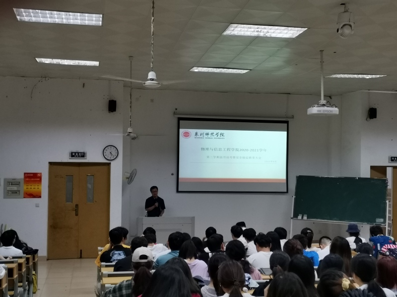 为了让学生在期末考前的复习能有序高效进行,营造安全稳定、温馨和谐的学习环境,2021年6月24日下午,我院在理工218教室召开期末温书迎考暨安全稳定教育大会,学院院长、党委书记杨惠山,院党委副书记、纪委书记洪荣文,院党委副书记吴丽双,学工办辅导员和非毕业班全体学生参加,会议由杨惠山主持。