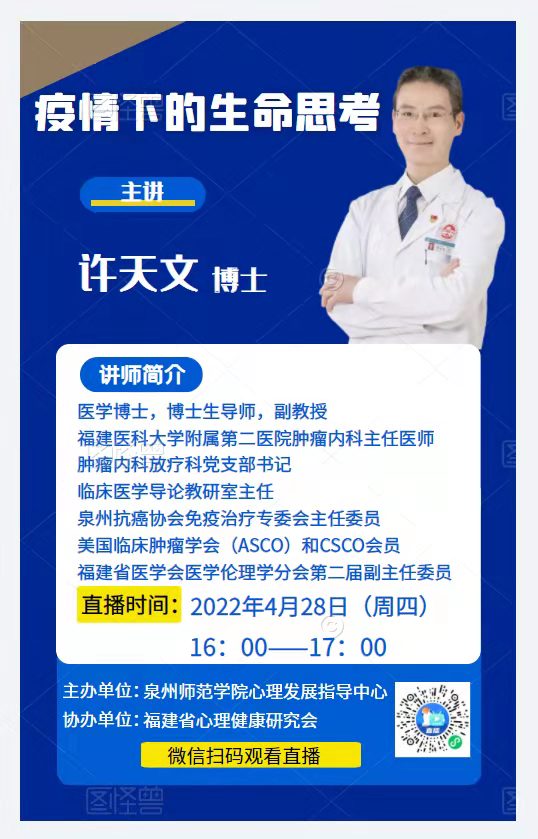 为鼓励和引导全校学生以更加积极的心态面对疫情,探索自己的生命价值,切实做好疫情期间学生的心理健康教育工作,校心理发展指导中心将举办“疫情下的生命思考”为主题的专题讲座。