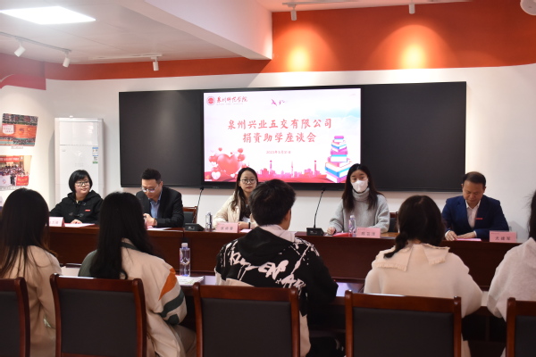 331日下午,泉州兴业五交有限公司一行3人走进学生社区开展捐资助学活动。学生工作部副部长尤建军,就业创业指导科副科长程力维等参加活动。