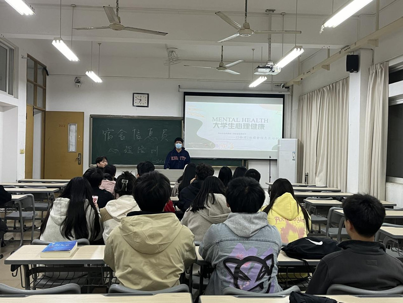 各班级心理委员充分运用校第32期朋辈心理委员培训所学知识,培训班级宿舍信息员。从常见心理障碍的识别、心理危机识别与干预、如何策划一场心理团辅活动等方面向心理宿舍信息员介绍心理健康相关知识,从朋辈帮助的角度深入浅出解释宿舍信息员的角色和任务,帮助同学在日常生活中识别需要重点关注的群体并采取正确的措施。