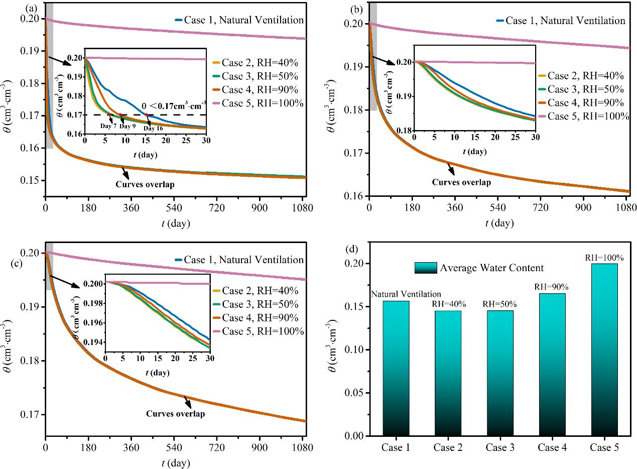 本研究聚焦遗址博物馆中夯土遗迹普遍面临的干裂与盐分富集劣化问题,针对受控环境下水盐耦合迁移机制认识不足的难题,研究团队以秦始皇兵马俑一号坑土隔墙为对象,构建基于Richards方程与Fick定律的水盐耦合迁移模型,并通过60天土柱蒸发实验进行系统验证。通过对自然通风条件下长达六年的水盐迁移过程模拟,揭示墙体上部与转角区域的高风险劣化趋势。研究表明,近饱和湿度(接近100% RH)是抑制水分损失和盐分结晶的关键环境条件,为遗址博物馆微气候调控提供了理论依据和量化支撑,提出了具有实践指导意义的“高湿屏障”保护策略。该成果在模型构建、机制揭示和调控策略评估方面具有显著创新性,拓展了夯土遗产长期保护的技术路径。