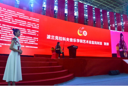 波兰克拉科夫音乐学院艺术总监玛利亚·波米安诺夫斯卡致辞并演奏波兰乐器苏卡(suka)