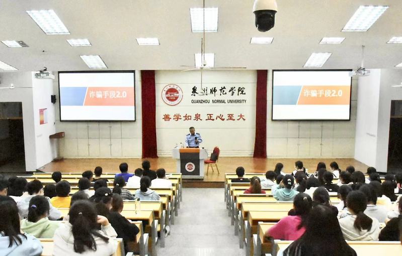 为进一步提高同学们的防范诈骗意识,守护自身财产安全,11月3日晚8点15分,在我校中山报告厅三楼开展题为“防范诈骗,就在你我身边”的防诈骗讲座,本次讲座邀请泉州市公安局后渚海防派出所民警胡杨主讲,我院2022级新生到场聆听。