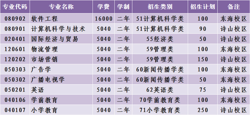 泉州师范学院 2020年专升本分专业招生计划