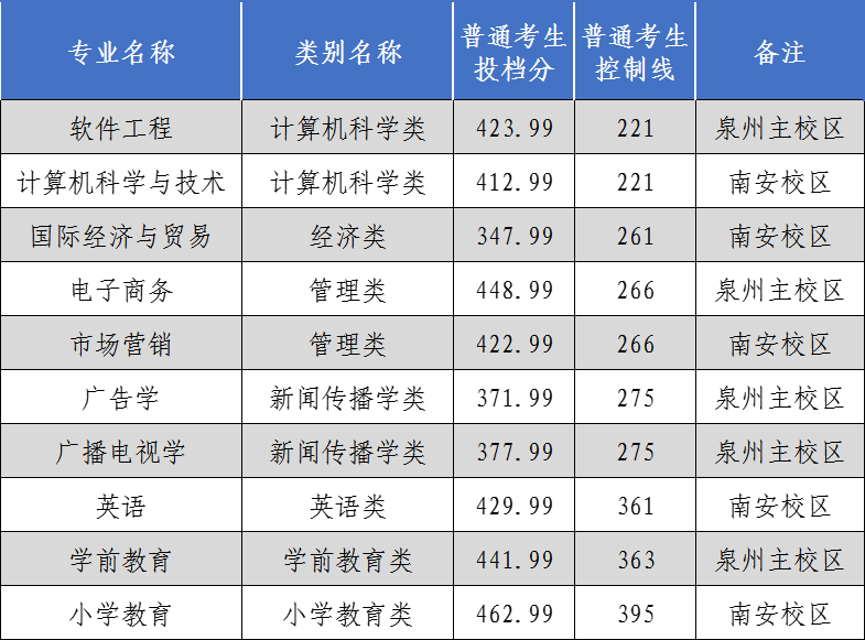 泉州师范学院2021年普通高校专升本投档线(普通考生)